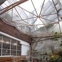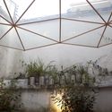 Para recuperar e integrar los tres espacios hemos construido una estructura flotante que recorre los espacio supliendo necesidades específicas como la recolección de aguas lluvias, la protección de la intemperie o la disposición de nuevas instalaciones y puntos de iluminación sin transformaciones radicales en la estructura espacial de la vivienda.Para el invernadero hemos implementado un sistema de recolección y tratamiento de agua lluvias diseñado por Paissano que suple el consumo de lavamanos y sanitarios.