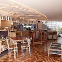 Extracto de descripción: El Taller de Té es un espacio para la experimentación, producción y servicios en torno del té. El programa está dividido entre los espacios que ocupan las áreas residuales de una vivienda de los años 40 en un barrio residencial de Bogotá, marcada por la sutileza de los detalles ornamentales, la mezcla de materiales y la idea de escala doméstica.