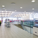El restaurante también es atendido por áreas de distribución de alimentos de "flujo libre" y está flanqueado por las salas de preparación y lavado de platos. Puede acceder a ella a través de una serie de escaleras fijas y mecánicas que dirigen el flujo de comensales que llegan desde el pasillo y desde el primer nivel. Finalmente, esta planta también tiene el comedor de los gerentes orientado hacia el norte sobre un jardín colgante.