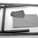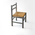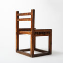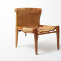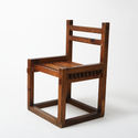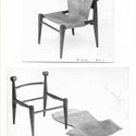 La silla está hecha a partir de dos sólidos cuerpos de madera unidos por líneas rectas, sus proporciones son evidencia de la actualización que Goeritz tenía en cuanto a diseño internacional: recuerda el lenguaje plástico de Henry Moore, o diseños de Ernest Race o Hans Wegner, diálogos directos con el diseño europeo contemporáneo. Tenemos noticias de una variación de este diseño, se trata de una silla de altura normal para comedor, esta silla estuvo en la casa de Goeritz por muchos años, tal vez un prototipo o un capricho del artista.