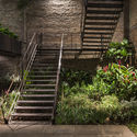 En el centro de la Ciudad Ho Chi Minh, el proyecto se ubica en la cuenca de un bloque creado por edificios comerciales de altura media/alta que rodean sus cuatro lados. Un callejón estrecho, lo conecta con la calle principal. En el sitio, desde la terraza del 2do nivel del edificio existente, podemos apreciar el tranquilo paisaje de las antiguas villas de estilo francés al frente, los edificios comerciales de 7-10 pisos y los hoteles de gran altura de 25-30 pisos. Esta vista indica que estamos en un "volumen vacío" que la comercialización no ha tocado; una escena común para la gente local, como una estructura trasera del rápido desarrollo urbano. Dado que el bloque de la ciudad tiene alrededor de 120 metros de largo, la cuenca (50-60 metros en cada lado) se encuentra entre las escalas urbana y arquitectónica.