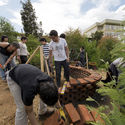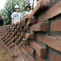 Estudiantes construyen muros de ladrillo en disposición algorítmica. Image Cortesía de Valeska Cirano