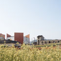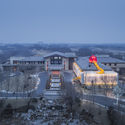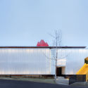 El policarbonato es el material principal para este proyecto en China, diseñado como un refugio para niños. El proyecto combina formas familiares con momentos fuertes y brillantes que culminan con una casa roja encaramada sobre toda la estructura. El único objetivo: crear una "realidad mágica" de lo que pudo haber sido un espacio mundano.