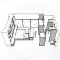 Para las habitaciones, Commune se inspiró en la residencia de Rudolf Schindler en West Hollywood. Se mantuvieron los techos de hormigón originales, con homasote en las paredes para la absorción de sonido y el calor. El mobiliario de las habitaciones está hecho de tablero de fibra de densidad media teñido en gris oscuro. Los baños, equipados con accesorios de latón no lacado, están separados de los espacios para dormir y estar con ventanas de acero y vidrio. Las habitaciones cuentan con radios Ace x Revo personalizados, albornoces con alitas + cuernos y productos de baño de Rudy's Barbershop y Pearl+. Lámparas Noguchi y mantas Pendleton tejidas en un patrón Mondrianesque completan el espacio. Algunas habitaciones incluyen C.F. Guitarras Martin & Co. y tocadiscos Ace x Rega RP1. Se presta mucha atención a la eficiencia: hay un lugar para todo y una salida cercana, sin importar dónde se encuentre.