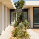 El proyecto se divide en dos, a lo largo de un canal revestido de plantas, la transparencia mejora su perspectiva a lo largo de toda la casa. La entrada procede alrededor de un estanque.
