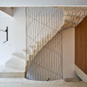 Las piezas de cruces y acristalamientos, latón pulido y patinado, columnas cruciformes y detalles de acristalamiento hacen referencia al período. Fundido en concreto, el plafón del sótano se deja expuesto y texturizado para sugerir material y forma subterráneos. Una escalera de travertino en voladizo con carga se eleva desde el sótano con su parte inferior izquierda como "cantera" para mantener la conexión y el espíritu de la piedra unida a la tierra mientras se eleva en espiral y sube al tragaluz arriba. Juntas, estas estrategias ayudaron a estructurar y definir la forma de vida preferida del nuevo ocupante, dejándoles suficiente flexibilidad para que crezcan, cambien y se deleiten en sus detalles, lo que quizás sea el legado más largo de la restauración.