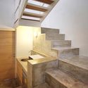 El nivel inferior utiliza cemento en bruto para que sea suave y se conecte con el piso inferior junto con un mostrador en la despensa que coincida con el estilo de la escalera. Sin embargo, en la parte superior de la escalera, utilizamos acero para que sea más transparente y pueda recibir bien la luz natural.