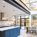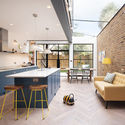 Descripción enviada por el equipo del proyecto. Sketch Architects ha renovado una casa adosada en el sudoeste de Londres agregando una espaciosa y brillante extensión trasera con una gran puerta de vidrio que se extiende hacia el jardín y un sótano agradable y utilizable.