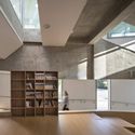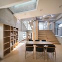 Para crear un sitio comunitario sin límites, un núcleo tradicional que separa el espacio con los pisos se transforma para realizar un cambio mucho más sutil en los niveles. Esta circulación vertical proporciona espacio para estantes de libros, área de descanso, asientos para actuaciones, y más. Este es un dispositivo arquitectónico importante que transforma las meras escaleras funcionales en un lugar comunitario continuo y extendido sin límite.