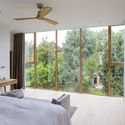 Al elevar el techo del desván bajo los derechos de construcción permitidos del sitio, se permite más luz y vistas al jardín a través de acristalamiento de altura completa. Los nuevos tragaluces, ubicados en la parte inferior de la inclinación del techo frontal, brindan más luz natural y ofrecen vistas al vecindario en general.
