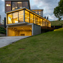 Descripción enviada por el equipo del proyecto. La Casa Estudio, fue planeada para ser un refugio artístico, espacio de inspiración, contemplación y tranquilidad junto a la naturaleza, situada en un terreno irregular de 382,52mº, localizada en Arujá, región metropolitana de Sao Paulo. Con un programa simple y objetivo, donde la principal exigencia del cliente fue un espacio sin obstrucciones para que pudiese correr su caballete libremente y posicionarlo a la vista seleccionada en sus momentos de inspiración. El proyecto con 382,00mº de área construida, fue dividida en tres niveles, siento estos: Primer nivel, contiene un garage amplio, que también será utilizado para esculpir madera y transformarla en obras de arte.