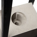 Tanto en la fotografía como en la escultura el espacio negativo es el componente principal que rige sobre una composición geométrica rigurosa. Esa manía por definir los límites del vacío genera un trabajo de elementos puntuales y ordenados en donde lo que predomina es el silencio.