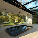 La vegetación cultivada existente consiste predominantemente en sicomoros y otros preciosos árboles de hoja caduca en composición libre. El área del terreno y la escala monumental de la vegetación existente permitieron considerar la generosa escala de la casa, insertada con sensibilidad en el espacio natural.