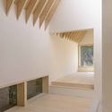 Un techo de madera serpenteante sostenido por tres chimeneas de hormigón conecta lo antiguo y lo nuevo, el interior y el exterior. La estructura del techo es visible en toda la casa y se despliega desde el área de entrada donde casi se puede tocar la estructura hasta la cresta sobre las habitaciones. La cuidadosa selección de materiales, los extensos detalles y la artesanía fortalecen la calidad de los espacios.