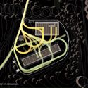 Al consolidar los diversos elementos programáticos en dos grandes edificios de graneros y un silo de granos (para minimizar las huellas de los edificios), la mayoría del sitio se asigna a los requisitos de circulación y acceso de equipos agrícolas a gran escala.