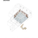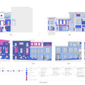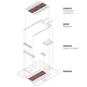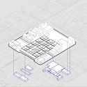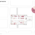 Por otro lado, la medianera se supone más que un muro limitante, más que un elemento bidimensional. Se propone como un espacio en donde se puede estar, parar, comer, hacer. Se propone un nuevo edificio a modo de nueva“medianera” programática: el nuevo Centro de Servicio Social. El nuevo borde se alinea masivamente a las medianeras como estrategia principal. Se trabaja escavando a través de elementos arquitectónicos que van definiendo la permeabilidad del edificio medianero. La propuesta mantiene la historia del corazón de la manzana siendo ahora una plaza simple y libre donde los paraboloides, las personas y los acontecimientos que van variando a lo largo del día son los protagonistas. Por último, circulaciones, tiendas, puestos, patios y color, le dan dinamismo a la nueva “medianera” del mercado.